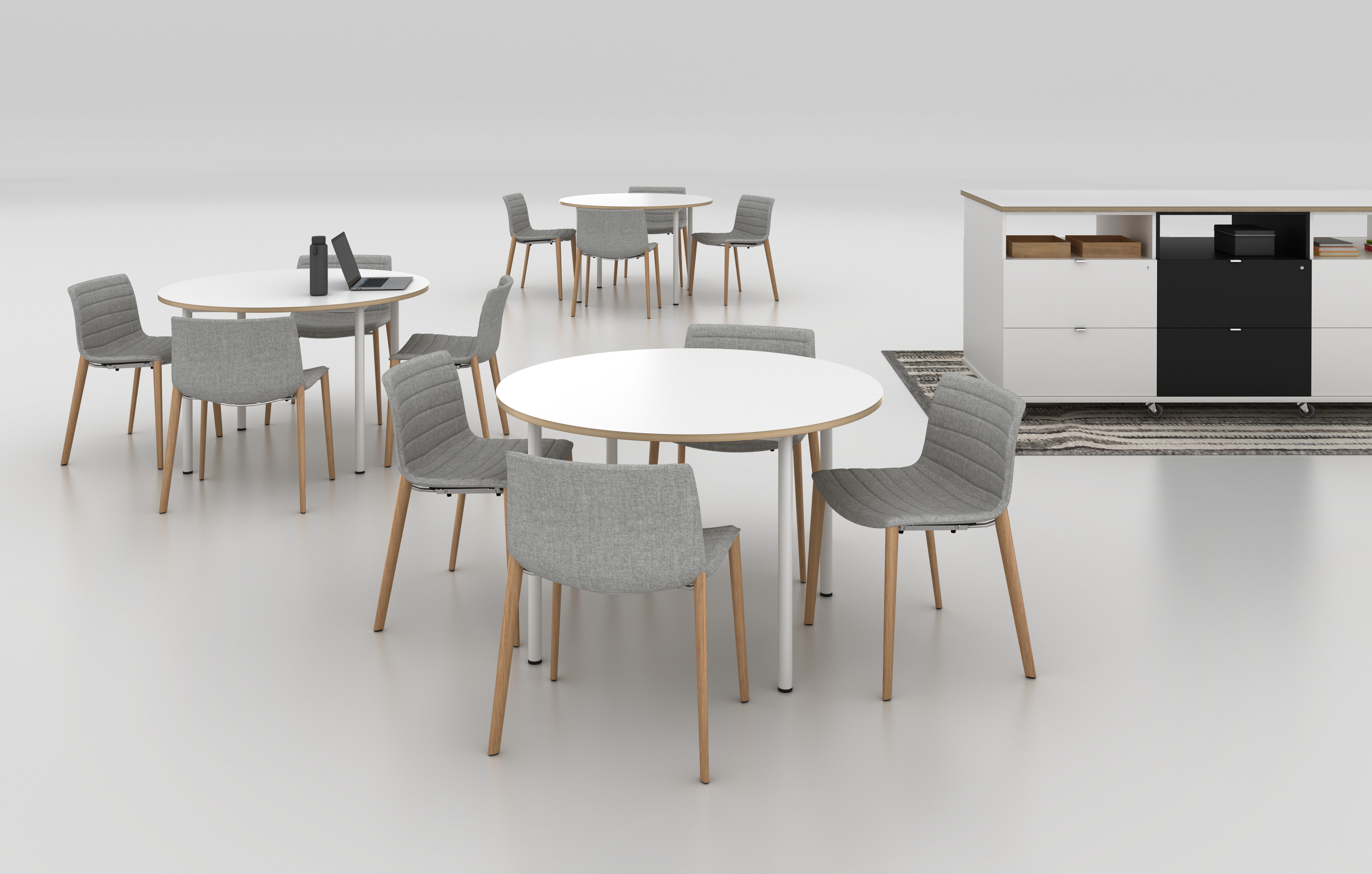 Private office space featuring a Corner Run-Off Desk, additional storage, and a fabric modesty panel
